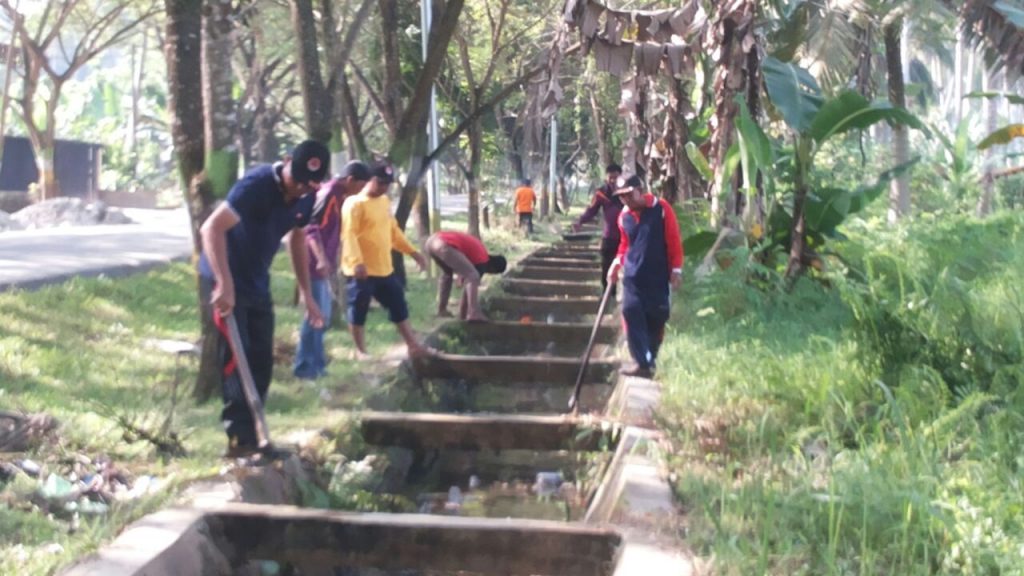 Aparatur Kecamatan Sei Tualang Raso melaksanakan gotong royong dengan membersihkan saluran drainase di sepanjang Jalan HM Nur/simpang Koramil 17 sampai dengan Titi sempoyan.