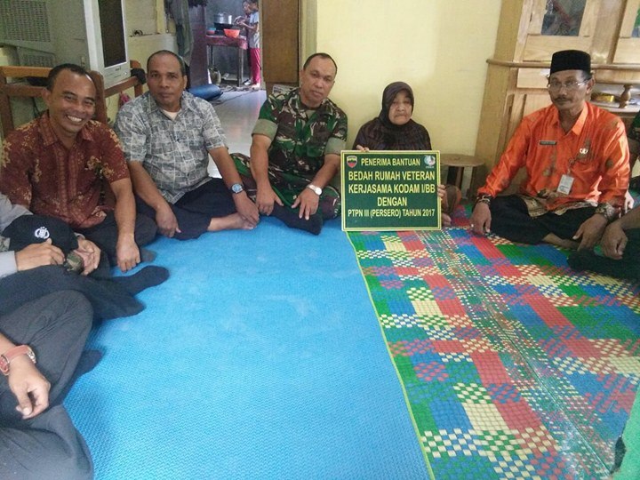 Kodam I/BB bekerjasama dengan PTPN III sukses melaksanakan bedah rumah milik para Pejuang Veteran yang sudah tidak layak huni. salah satunya adalah Ibu Siti Aminah, warga Jl. Sei semayang Lk. III Kel. Pasar Baru, Kec. Sei Tualang Raso, Kota Tanjungbalai. Dengan rasa haru dan linangan air mata mengucapkan terima kasih banyak kepada TNI khususnya Kodam I/BB dan PTPN III atas bantuan bedah rumah yang diterimanya.